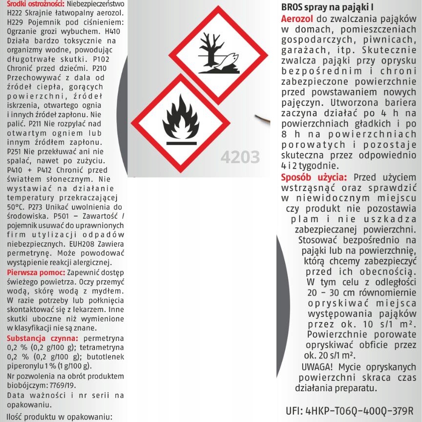 BROS Spray na Pająki Rozpylacz aerozol przeciwko pająkom Bros 0,25 kg 250ml